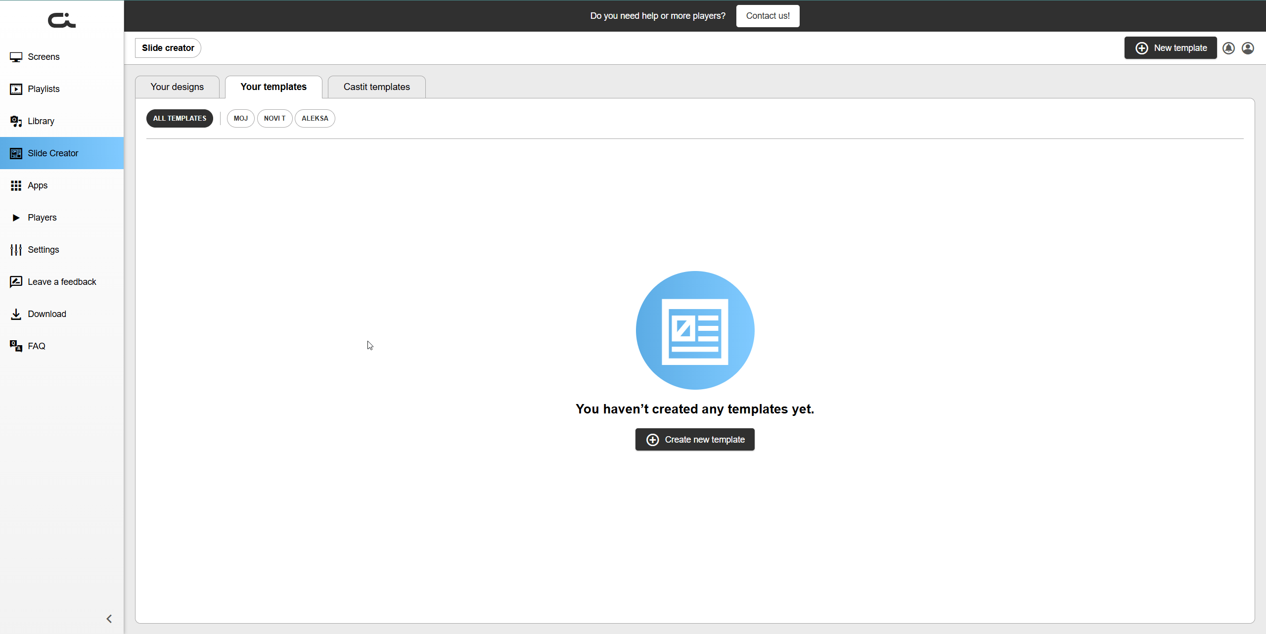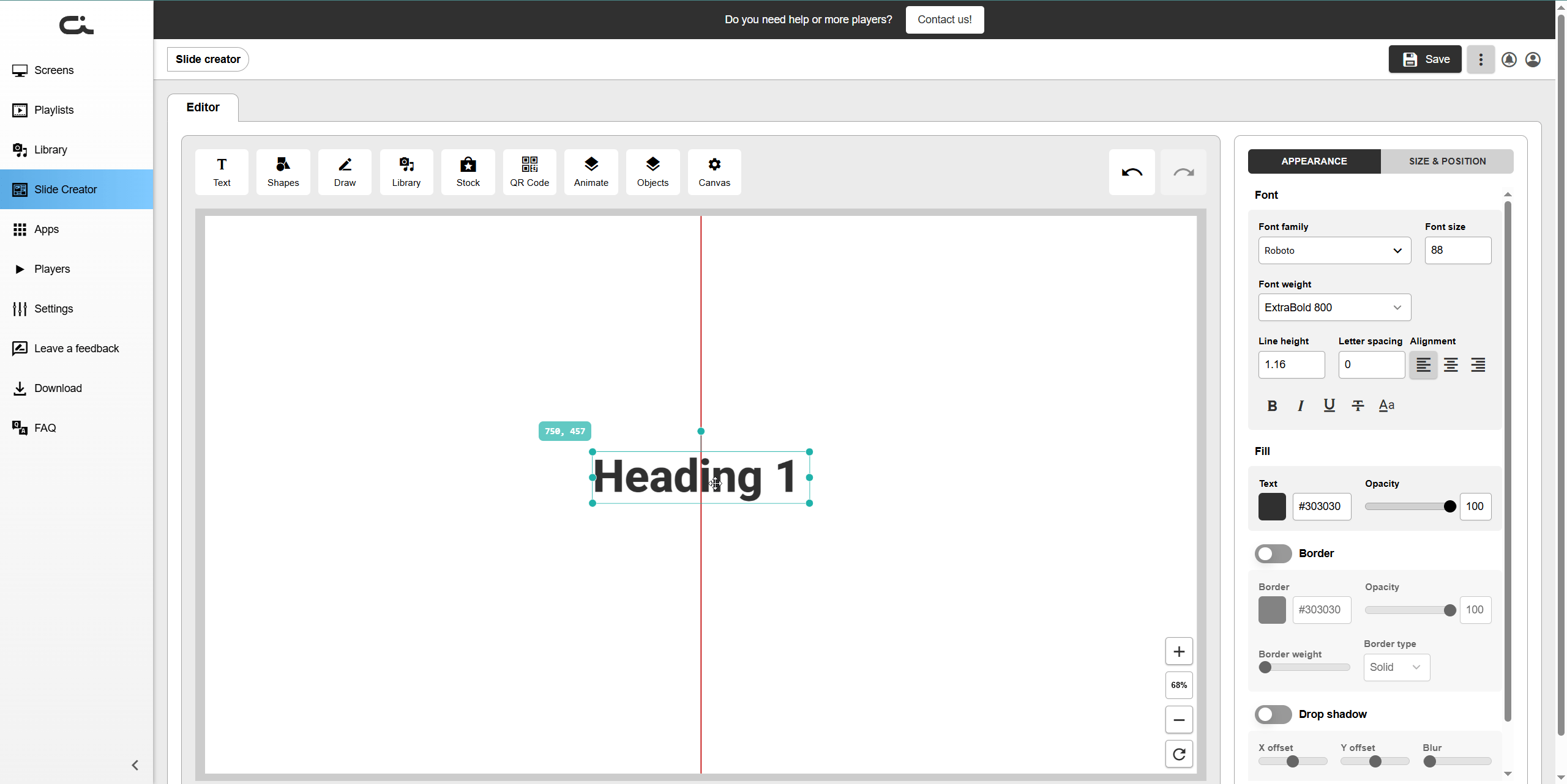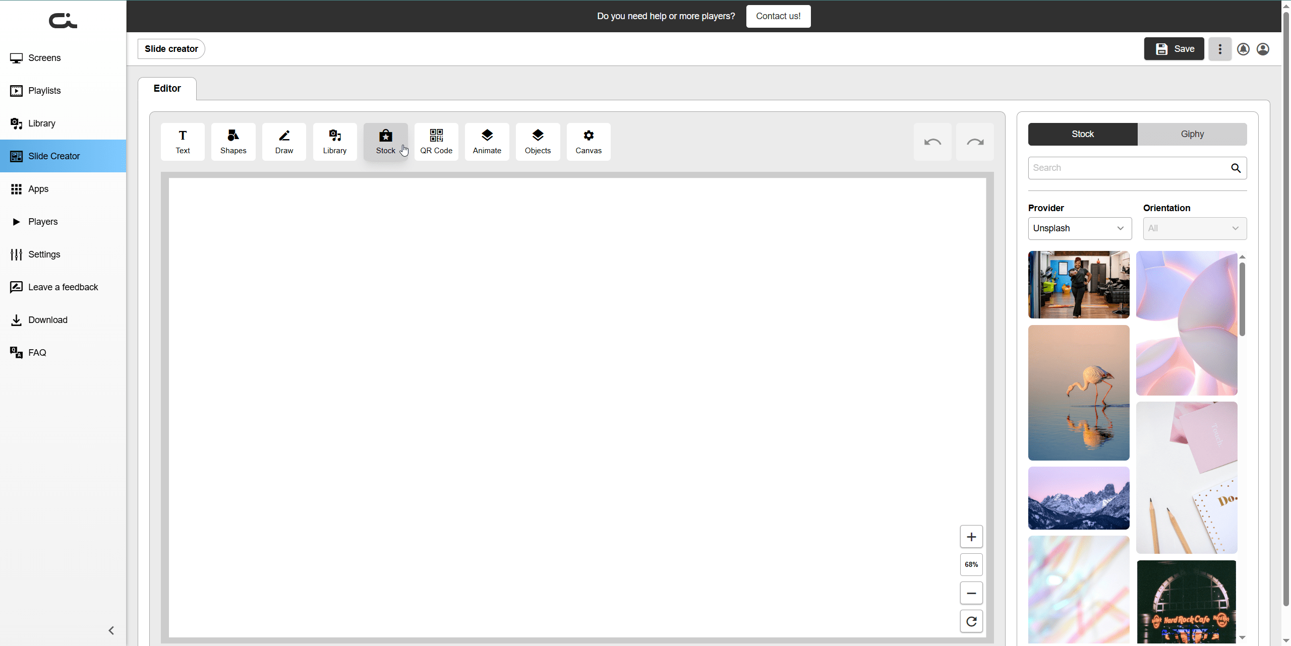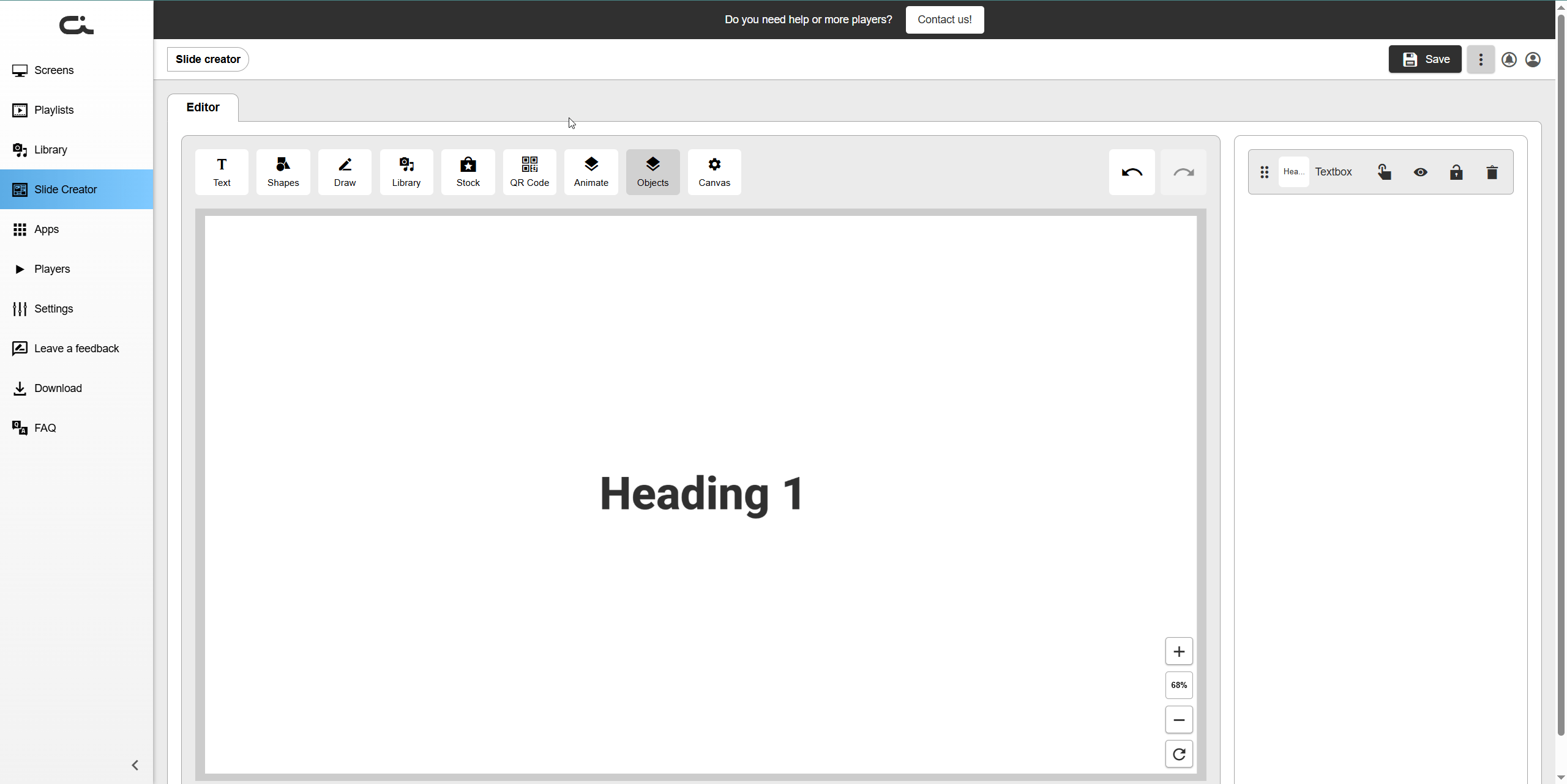 Kreator slajdova je moćan ugrađeni alat za dizajn koji vam omogućava da napravite prilagođene digital signage slajdove bez dodatnog softvera.